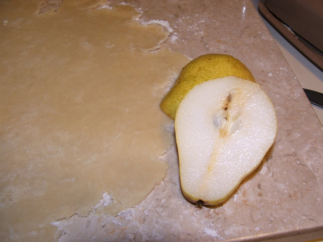 If you recall, a few weeks ago I was worried that I wouldn't have enough pears to even make a pear pie because the squirrels were destroying all of the pears on my tree (Pears and Squirrels). Well, thankfully I had just enough to make this pie - the "netting" worked!!