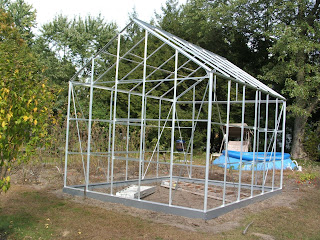 This (the picture above) is what the frame of the greenhouse looked like before the wind - I had not had time to take a picture of the greenhouse totally finished with the panels installed