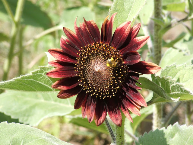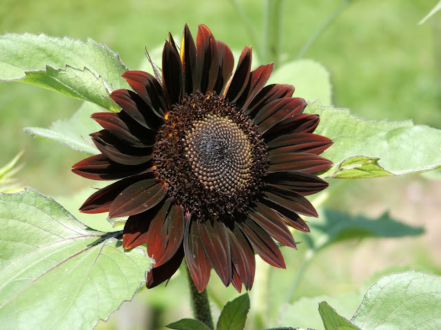 This is a brick red, almost brown in color. Here again, there seemed to be a mix-up with the seed packet because some of these sunflowers seemed purplish in color (you will see what I mean if you click on the link above).