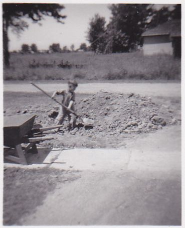 My father is the hardest working person that I know. This characteristic must have started at a very young age because that is him in the picture above. I'm not sure what they were building but there is my 6 year old dad shoveling away to help out in whatever task. I also find this picture very interesting because across the street shows empty fields. Today, across the street are many houses and subdivisions.