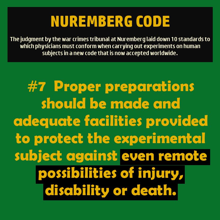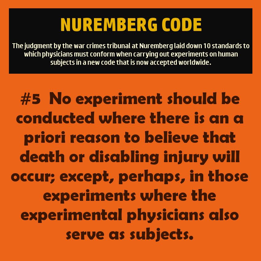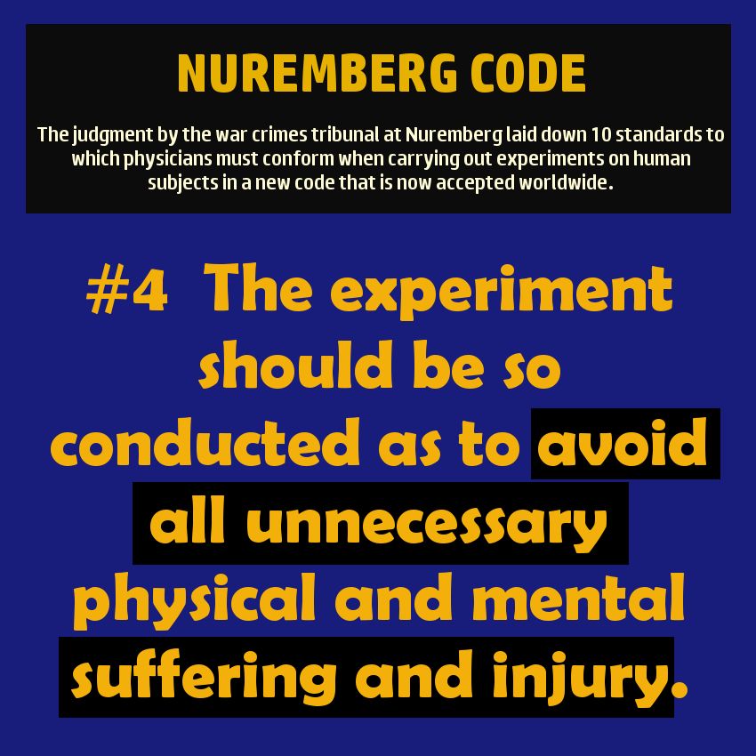 "Avoid all unnecessary suffering & injury" like permanent, life-changing side effects from the experiment?