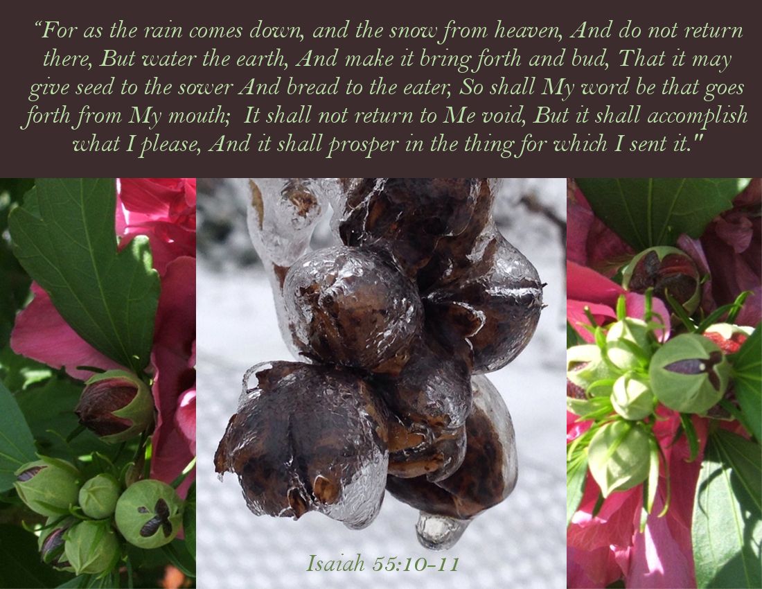 Verses 10 and 11 are so beautifully poetic. I especially find the description about God's word so helpful and comforting. God's word WILL ACCOMPLISH GOD'S PLAN. God never lies - His word and promises are never empty. The Bible truly is "living and active" (Hebrews 4:12).