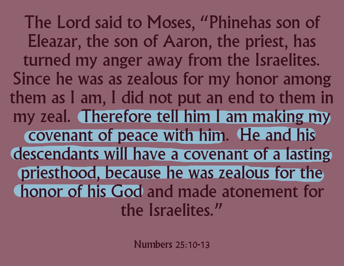 The covenant that we are studying today wasn't truly established until two generations after Aaron. It was through Aaron's grandson Phinehas (see Bible passage below):