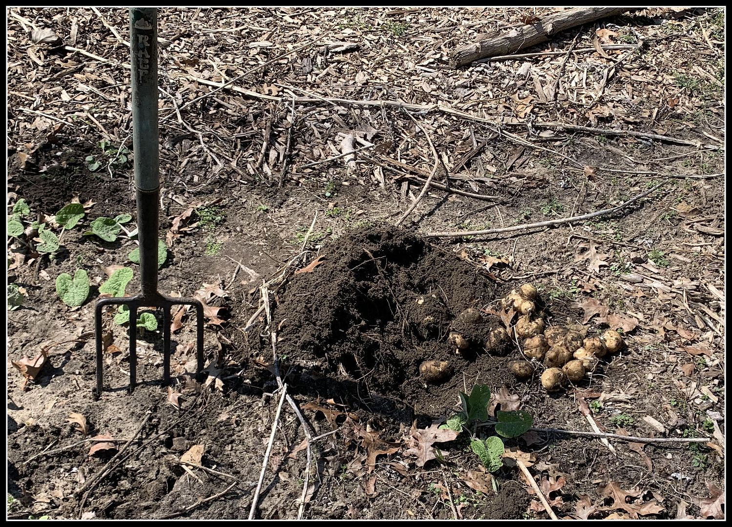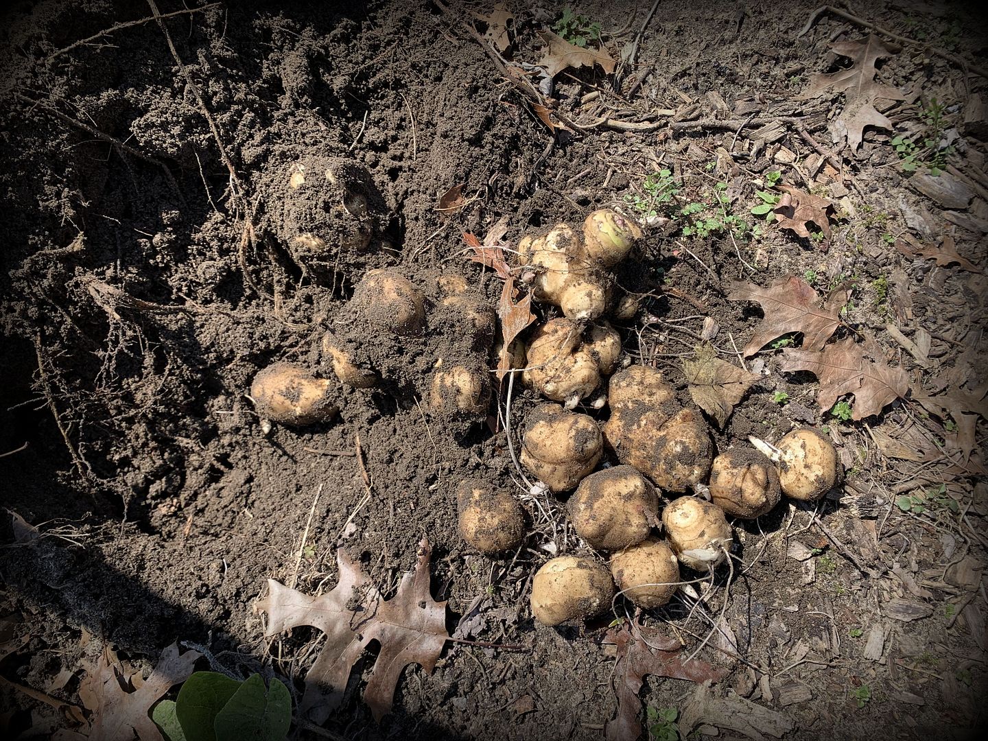 They are harvested similar to potatoes with a pitchfork (see pictures below).