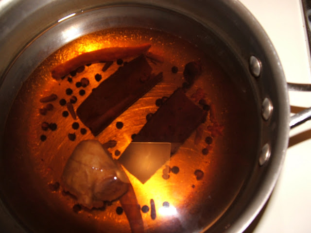 | After boiling - the orange syrup will become transparent (look at the difference between the two pictures. |