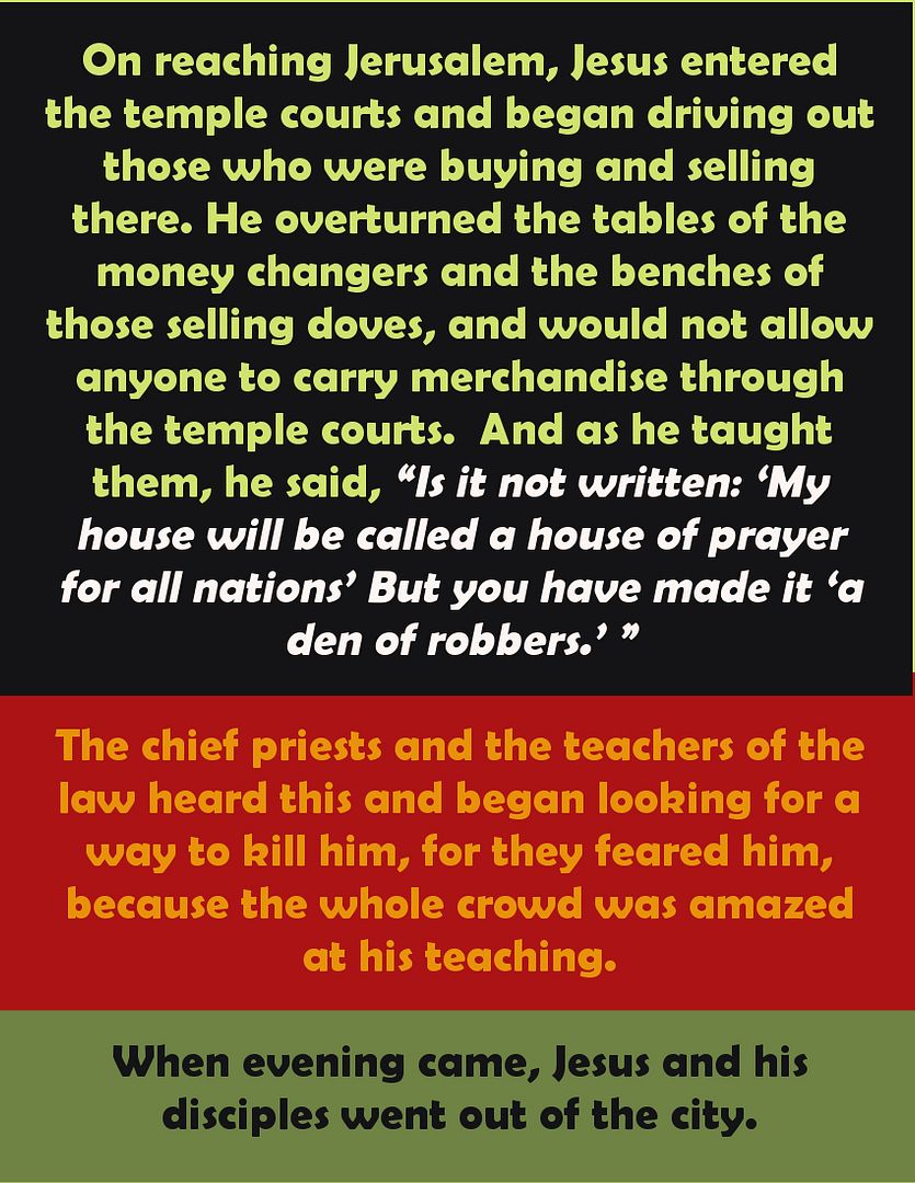 I am reminded of what Jesus did when he found out what was going on in the churches (or temples) of his day (see Scripture above).