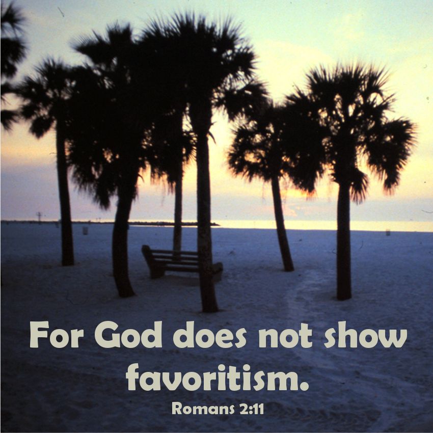 You will notice in Romans 2:11 (see picture above) that God does NOT show ANY favoritism EVER!! That means everyone is EQUALLY loved by God! He does not favor anyone over another.