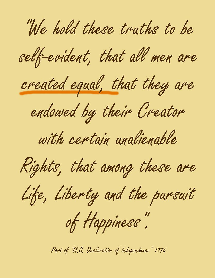 We are ALL created equal by our Creator!! With rights that can NEVER be taken away
