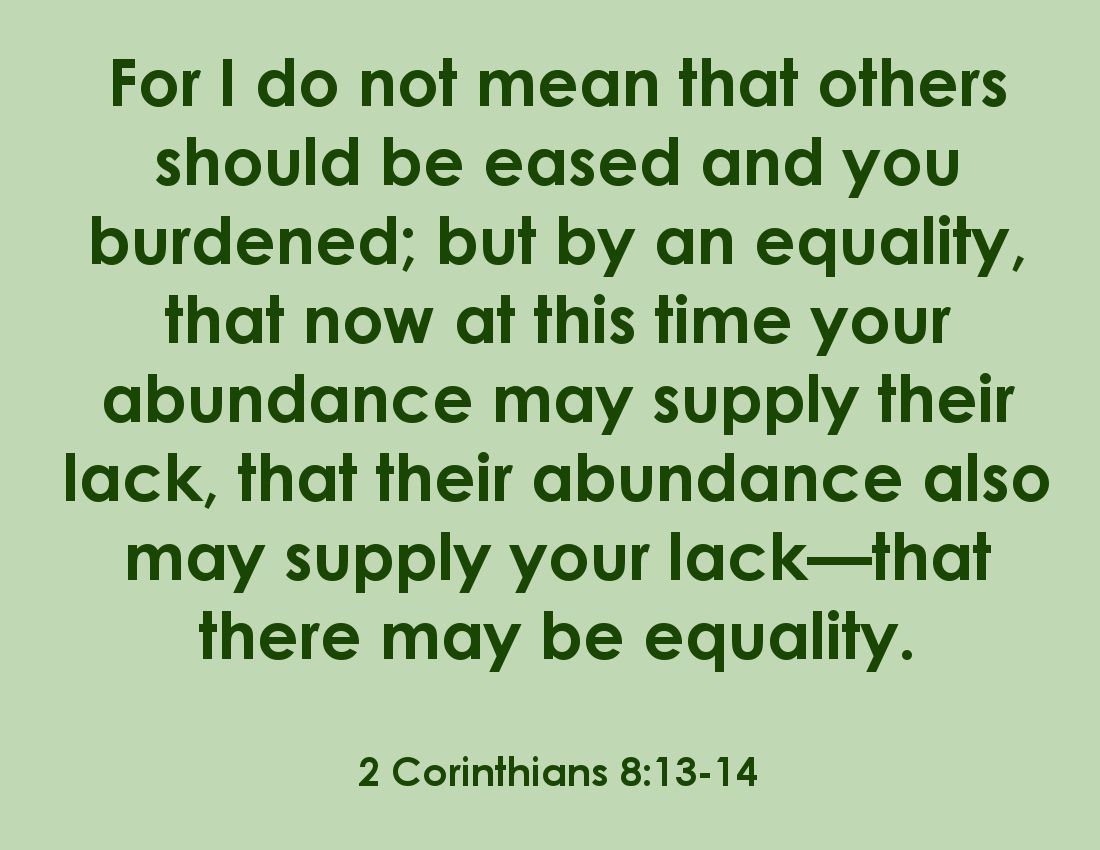 The verse below is so wonderful - this is exactly how we should treat each other (notice the use of the word "abundance" - that is what God meant for all of our lives - to live in abundance and in harmony/equal to each other):