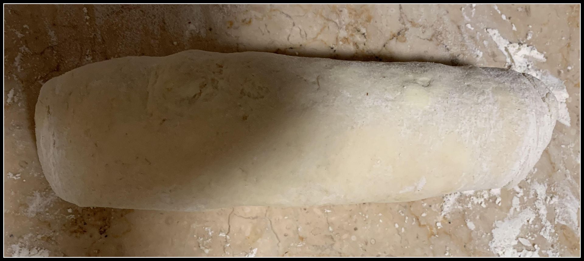 Continue rolling until you reach the other end (see 2 pictures below). Dab a little water on the top edge of the dough for a light seal to keep the swirls from opening up in the oven.